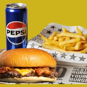 baconcheeseburger con lattuga, pomodoro, salsa Smash (DBurgers Original), patatine e bibita