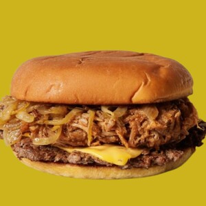 cheeseburger con pulled, cipolle, salsa bbq